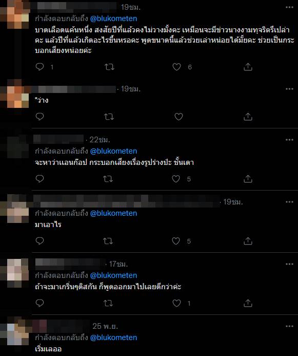 ล่าสุด (25 พฤศจิกายน 2564) เฌอเอม ชญาธนุส ศรทัตต์ อดีตผู้เข้าประกวดมิสยูนิเวิร์สไทยแลนด์ 2020 ได้ทวีตข้อความผ่านทวิตเตอร์ @blukometenว่า "ปีก่อนนี่นิ่งเชียว" ทำให้หลายคนโยงไปถึงดราม่าช่างภาพกองประกวดลวนลามนางงาม