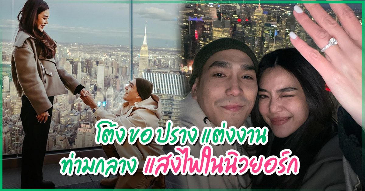 โดยงานนี้คาดว่า ทั้งโต้งและปราง ได้เดินทางไปที่ตึก Empire State เพื่อที่จะชมยอดวิวสวย ๆ ทั่วเกาะแมนฮัตตัน จากนั้นหนุ่มโต้งก็คุกเข่า เพื่อขอปรางแต่งงาน และแน่นอนว่า สาวปรางก็ไม่รอช้า พูดคำว่า “แต่งค่ะ” ทันที