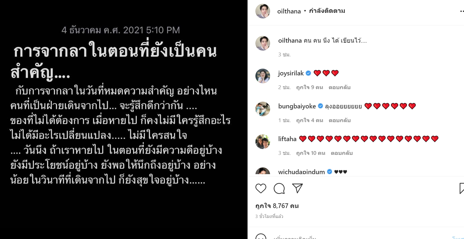 ออย ธนา โพสต์เศร้าการจากลาในตอนที่ยังเป็นคนสำคัญ กับตอนหมดความสำคัญ ของที่ไม่ได้ต้องการ เมื่อหายไปก็คงไม่มีใครรู้สึกอะไร หลังถอยห่างความสัมพันธ์กับภรรยา เธอ รวรีย์