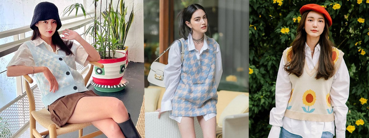 ช่วงนี้อากาศดี๊ดี มีลมเย็นเบา ๆ พัดมาทักทาย แต่ความชิลนี้อาจอยู่กับเราไม่ได้นาน ดังนั้นต้องรีบจัดแฟชั่นหน้าหนาวให้ไว ! แต่จะหยิบเสื้อไหมพรมตัวหนาออกมาใส่ก็ดูร้อนไปสักนิด ลองเปลี่ยนมาเป็น เสื้อกั๊กไหมพรม หรือ Knit Vest เก๋ ๆ สักตัวกันดีกว่าค่ะ ด้วยความที่เป็นเสื้อแขนกุดไหมพรม ไม่ทำให้เรารู้สึกร้อนเกินไป จึงเหมาะกับสภาพอากาศเมืองไทยมากกว่า จะใส่กันหนาวก็ได้ แถมสวยชิค นึกว่าสาวเกาหลีมาเองเลยทีเดียว