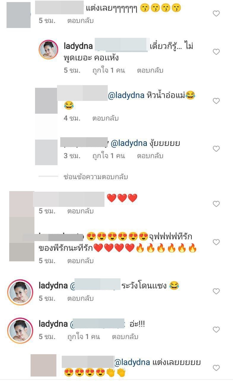 นอกจากนี้ยังมีหลายคนเชียร์ว่า "แต่งเลย ๆๆๆๆๆๆ" ซึ่งได๋ก็ได้ตอบกลับคอมเมนต์หนึ่งด้วยว่า "เดี๋ยวก็รู้… ไม่พูดเยอะ คอเเห้ง" ส่วนจะมีข่าวดีในเร็ว ๆ นี้หรือไม่ คงต้องรอจับตากันค่ะ