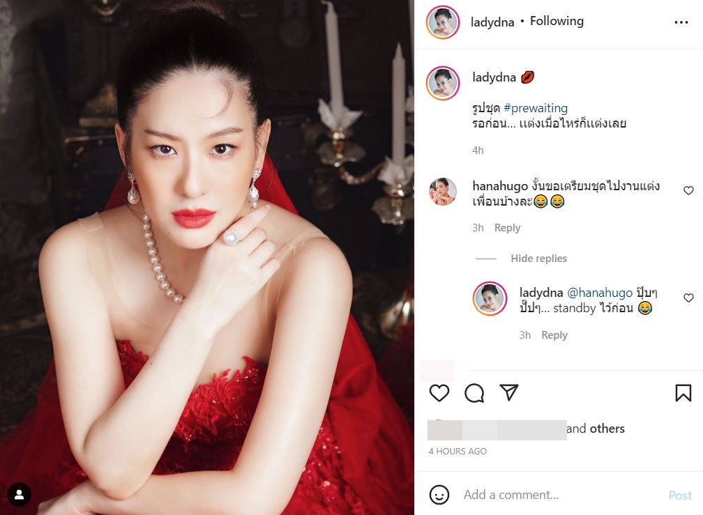 งานนี้ทำเอาหลายคนตื่นเต้น จับตาเพราะแคปชั่น ซึ่งก็มีเพื่อนดาราอย่าง ฮาน่า ทัศนาวลัย มาคอมเมนต์ว่า "งั้นขอเตรียมชุดไปงานแต่งเพื่อนบ้างละ" ก่อนที่ได๋จะตอบว่า "ปุ๊บ ๆ ปั๊บ ๆ… standby ไว้ก่อน" และยังแท็กหาเพื่อนอีกว่า "ระวังโดนเเซง"
