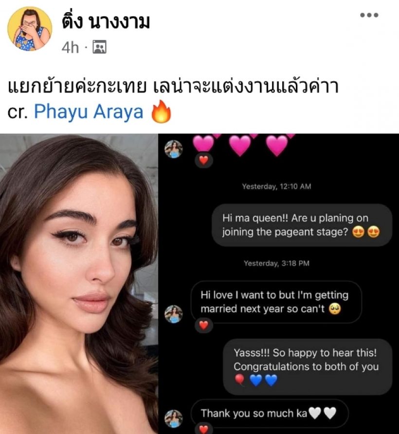 เลน่า เฮเลนา แฟน ชาริล ชัปปุยส์ ที่แฟนนางงามยกให้เป็นว่าที่ตัวเต็ง Miss Universe Thailand 2022 ประกาศลงประกวดไม่ชิงมง ลั่นปีหน้าจะแต่งงานแล้ว