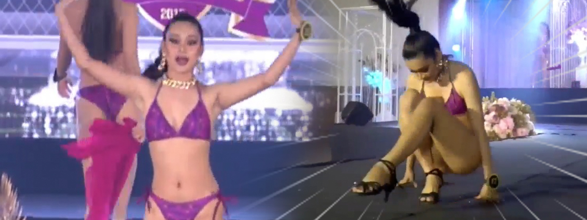 เวทีมิสแกรนด์ร้อยเอ็ดจะกลายเป็นตำนาน.. น้องพิซซ่า มิสแกรนด์สุวรรณภูมิ โชว์ตีลังกาม้วนหน้ารอบประกวดชุดว่ายน้ำ เรียกเสียงฮือฮาทั้งกองประกวด