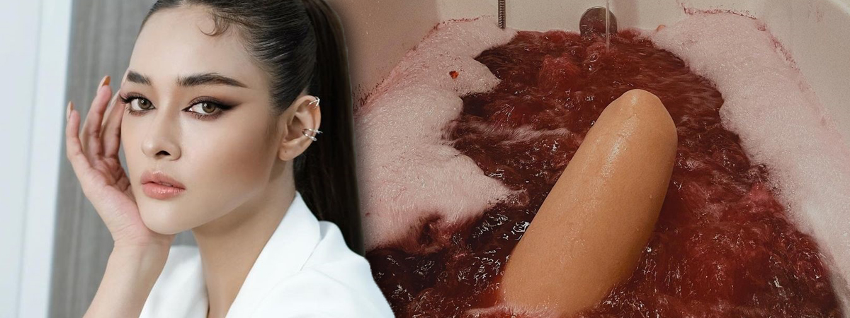 เล่นเอาแตกตื่นทั้งอินสตาแกรมเลยทีเดียว สำหรับอีกหนึ่งนางเอกสาวแซ่บตัวแม่ ปุ๊กลุก ฝนทิพย์ ที่ล่าสุด (28 ธันวาคม 2564) ออกมาโพสต์ภาพขณะนอนแช่น้ำอยู่ในอ่างอาบน้ำ แต่น้ำที่แช่นั้นเป็นสีแดงคล้ายสีของเลือดจนน่ากลัว