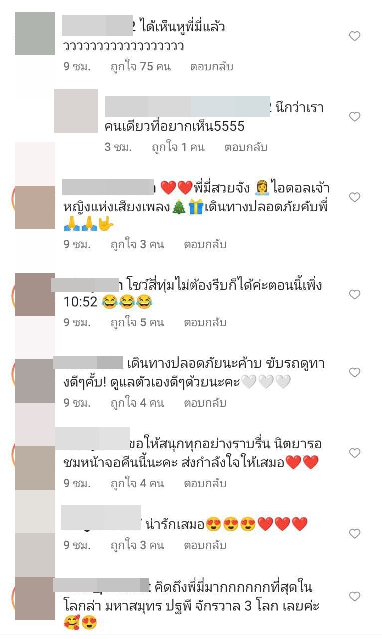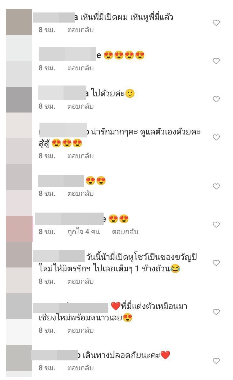 งานนี้เลยมีหลายคอมเมนต์ที่เข้ามาโฟกัสเรื่องหูของ ปาล์มมี่ ทั้งที่บอกว่า "ได้เห็นหูพี่มี่แล้ว" เพิ่งเคยเห็นเป็นครั้งแรก มีคนชมว่าหูน่ารัก บ้างก็ว่าได้เห็นหูพี่มี่ เหมือนเป็นของขวัญปีใหม่อย่างดี บ้างก็บอกตามมา 10 ปี เพิ่งได้เห็นหูชัด ๆ ก็คราวนี้ และยังมีคนบอกว่า "ดีใจที่ได้เห็นหูพี่มี่" อีกด้วย
