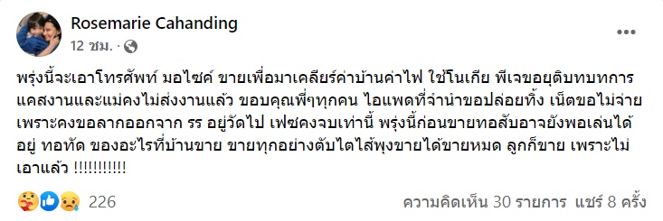 โรสแมรี่ คาฮันดิง อดีตนักร้องดังยุค 90 โพสต์น่าเป็นห่วง ตัดพ้อชีวิตลำบากขั้นสุด บ้านกำลังจะโดนยึด ไม่สามารถดูแลลูกชายได้อีกต่อไป หมดบุญกันแค่นี้ ยอมแพ้ต่อโชคชะตาแล้ว