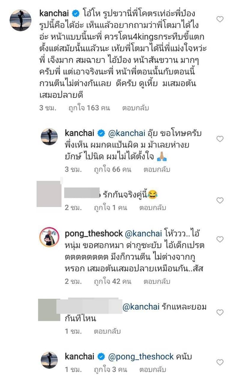 จากนั้นทาง หนุ่ม กรรชัย ก็ไม่รอช้า เข้ามาคอมเมนต์ยาว ๆ แบบจัดหนัก จัดเต็ม ว่า "โอ้โห รูปขวานี่พี่โคตรเท่อ่ะพี่ป๋อง รูปนี้คือได้อ่ะ เห็นแล้วอยากถามว่าพี่โตมาได้ไงอ่ะ หน้าแบบนี้นะพี่ ควรโดน 4kings กระทืบขี้แตกตั้งแต่สมัยนั้นแล้วนะ เห้ยพี่โตมาได้นี่พี่แม่งใจหว่ะพี่ เจ็งมาก สมฉายา ไอ้ป๋อง หน้าสันขวาน มาก ๆ ครับพี่ แต่เอาจริงนะพี่ หน้าพี่ตอนนั้นกับตอนนี้ กวนตีนไม่ต่างกันเลย ดีครับ ดูเหี้ย มเสมอต้นเสมอปลายดี"