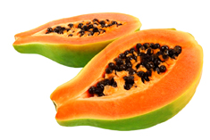 มะละกอ เป็นส่วนผมขึ้นชื่ออีกอย่างหนึ่งในเรื่องการทำให้ผิวกระจ่างใส เนื่องจากมันมีส่วนผสมของเอนไซม์ที่เรียกว่า Papain ที่ช่วยในการสร้างเซลล์ผิวใหม่และการผลัดเซลล์ผิว และยังช่วยทำให้ผิวนุ่มนวลอีกด้วย มะละกอยังอุดมด้วยิวตามิเอ อี และซี ซึ่งเป็นแอนตี้ออกซิแดนต์ที่ช่วยให้ผิวชุ่มชื่นและปกป้องผิวอีกด้วย