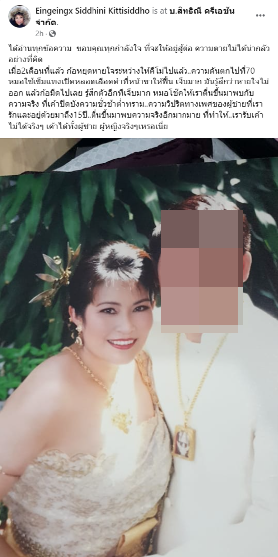 และหลังจากที่เป็นข่าวออกไป อิ๋งอิ๋งก็เผยต่อว่า เมื่อ 2 เดือนที่แล้วเธอหยุดหายใจ ความดันตก จนหมอต้องปั๊มหัวใจให้ตื่น และเมื่อตื่นมาก็พบกับความจริงที่ว่า สามีของเธอที่อยู่กินกันมา 15 ปี ไปมีชู้เป็นหมอนวดกระปู๋ และสามีอาจจะได้ทั้งผู้หญิงและผู้ชายด้วย