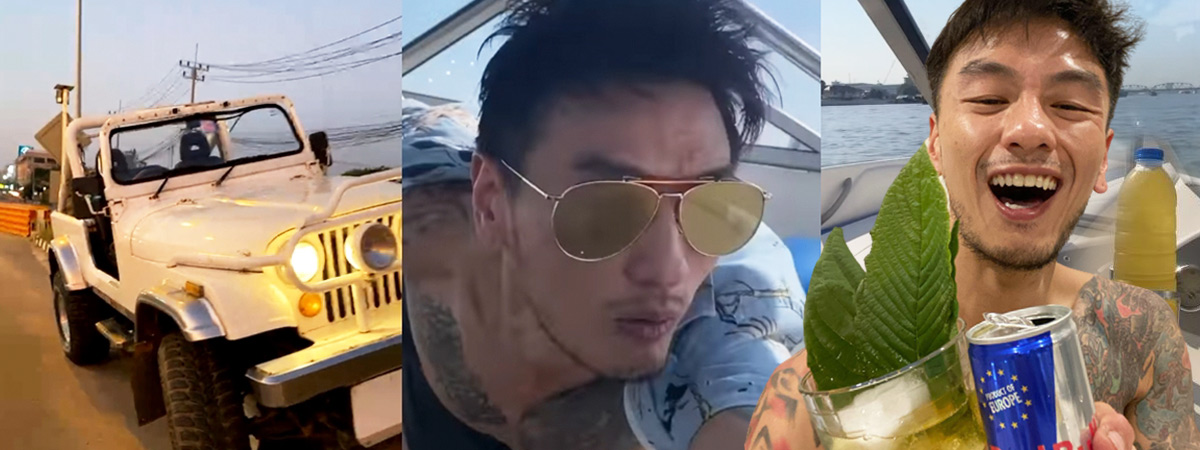ทั้งนี้ ในคลิปของบีมเมื่อวันที่ 29 มกราคม บีมได้ถอดเสื้อขับรถโฟร์วีลที่พัทยา โดยขณะที่บีมขับรถ จะเห็นว่ามือหนึ่งของบีมได้พูดกับกล้องและไลฟ์ไปด้วย ช่วงแรก ๆ บีมยังขับช้าอยู่ แต่หลัง ๆ บีมได้ประกาศกินใบกระท่อมกับเครื่องดื่มชูกำลัง และพอออกถนน บีมก็เร่งความเร็วรถ พร้อมกับพารถไปเสยเกาะกลางโดยบอกว่า เป็นการโชว์สมรรถภาพ