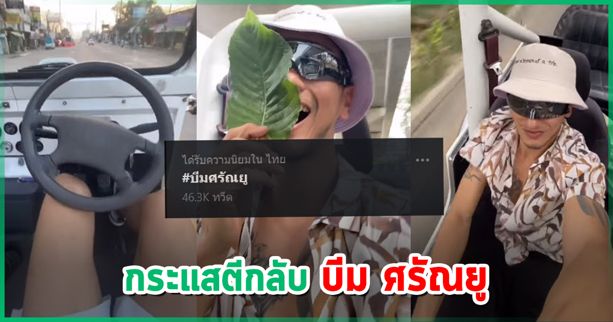 กลายเป็นกระแสที่โซเชียลจำนวนไม่น้อยให้ความสนใจ สำหรับ บีม ศรัณยู ดาราชื่อดัง ซึ่งช่วงหลังจากไลฟ์และอัดคลิปกินใบกระท่อมและน้ำผสมใบกระท่อม บีมก็มักจะมีการท้าแดด ก่อนจะออกไปทำกิจกรรมต่าง ๆ เช่น ขับรถ ขับเรือ บ้างก็ขับเร็วด้วยท่าทีเปี่ยมไปด้วยพลัง ส่วนใหญ่จะไปคนเดียว มือหนึ่งขับ มือหนึ่งไลฟ์ พร้อมมองกล้องแล้วตะโกนหรือพูดคุยต่าง ๆ กับคนดู