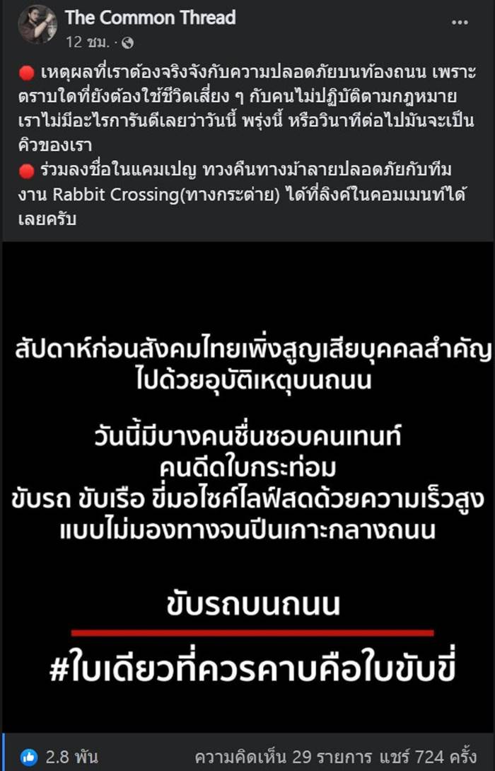 ขณะที่บางส่วนเริ่มตั้งคำถามว่า ช่วงเดือนที่ผ่านมาเพิ่งจะมีกรณี หมอกระต่าย ถูกตำรวจขี่ประมาทชนเสียชีวิตบนทางม้าลายจนผู้คนเริ่มรณรงค์เรื่องไม่ฝ่าฝืนกฎจราจร แต่ไม่นานกลับเกิดไวรัลของ บีม ศรัณยู ที่หลายครั้งมักจะขับรถชวนหวาดเสียว แต่ก็มีหลายคนสนับสนุนและชื่นชอบพฤติกรรมแบบนี้ เท่ากับว่าสิ่งที่สังคมร่วมกันผลักดันมาตลอดหลายสัปดาห์กำลังจะถูกลืมไปแล้วใช่หรือไม่