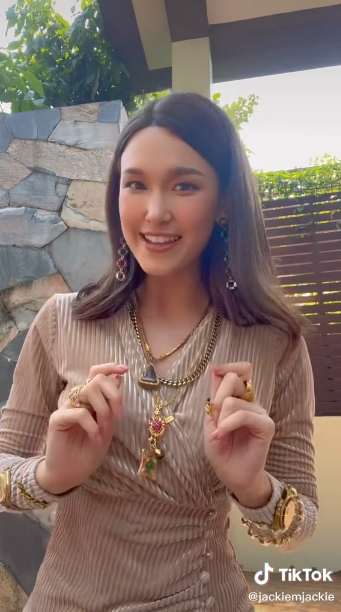 โดยในคลิปสาวแจ็คกี้นั้นใส่เครื่องประดับเต็มตัว สร้อยทอง สร้อยพระ นาฬิกา จัดเต็มจนแทบไม่มีพื้นที่ว่าง และยังได้แนะนำตัว พร้อมบอกสัดส่วนปัง ๆ ว่า "ผู้เข้าประกวดหมายเลข 375 แจ็คกี้ ชาเคอลีน มึ้นช์ สัดส่วน 32 25 35.5 มีชีวิตมาแล้ว 28 ปี ปกติเป็นคนชอบขายของมาก ๆ ไม่ว่าจะเป็นร้านอะไรก็ขายได้หมด ถนัดในเรื่องของการขายอย่างยิ่ง และปกติก็เป็นคนที่ชอบใส่ทองแบบนี้มาก ๆ อยู่แล้ว วอนแม่พิจารณาด้วยนะคะ ขอบคุณค่า แม่กุ้ง"
