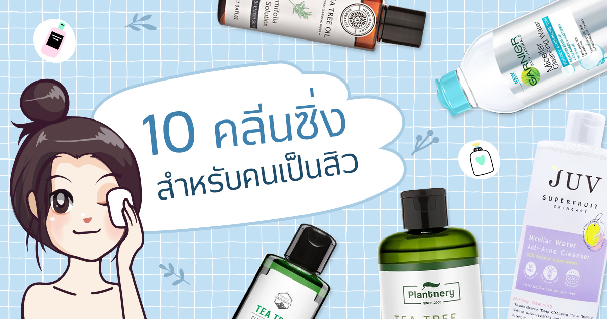 - เลือกจากส่วนผสม - คลีนซิ่งสำหรับคนเป็นสิวมักจะมีส่วนผสมที่ช่วยฆ่าเชื้อสิวด้วย เช่น Tea Tree Oil, Zinc PCA, Salicylic Acid, Glycolic acid เป็นต้น ซึ่งจะทำให้สิวหายเร็วขึ้น และทำความสะอาดผิวได้อย่างล้ำลึก