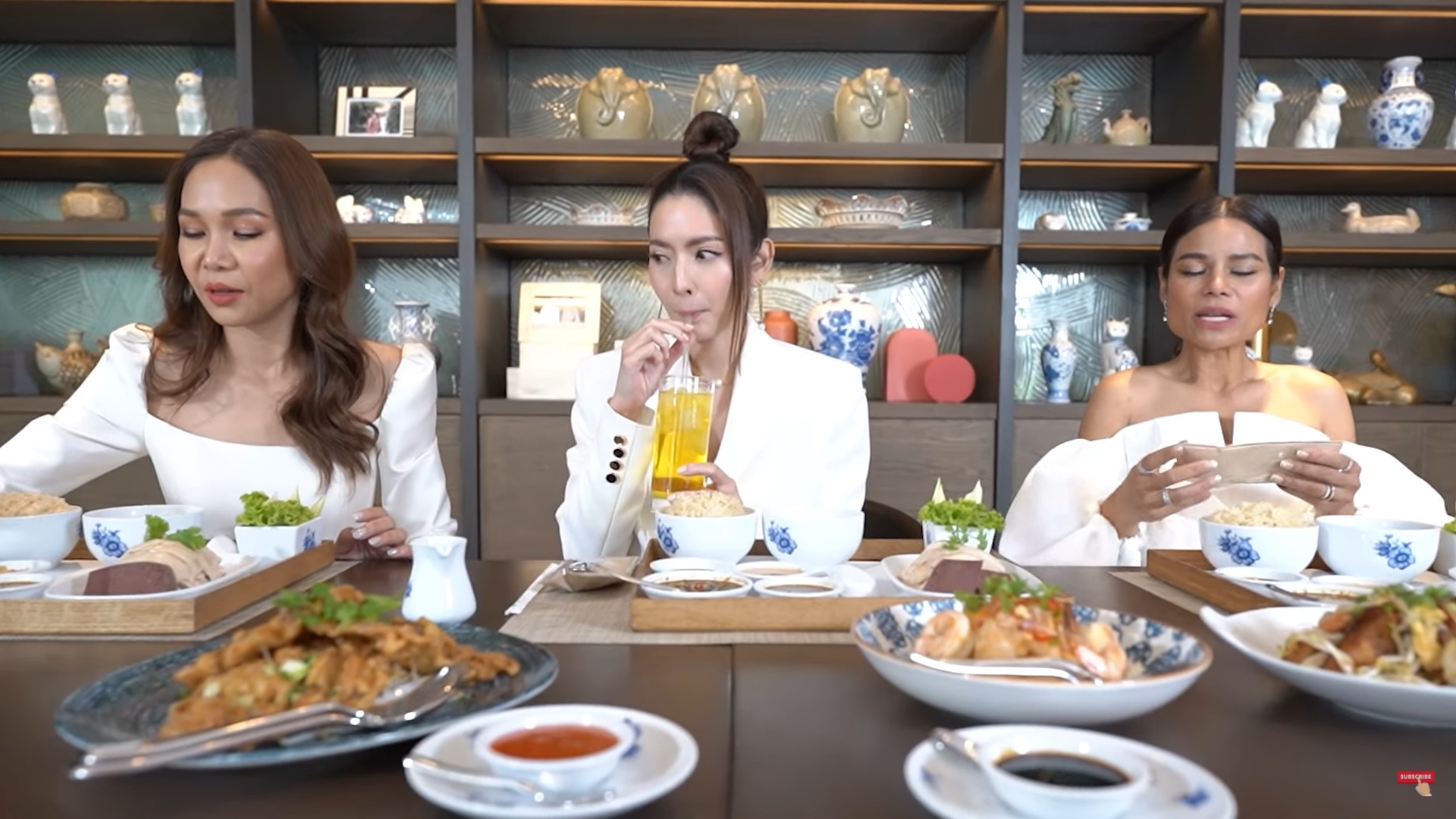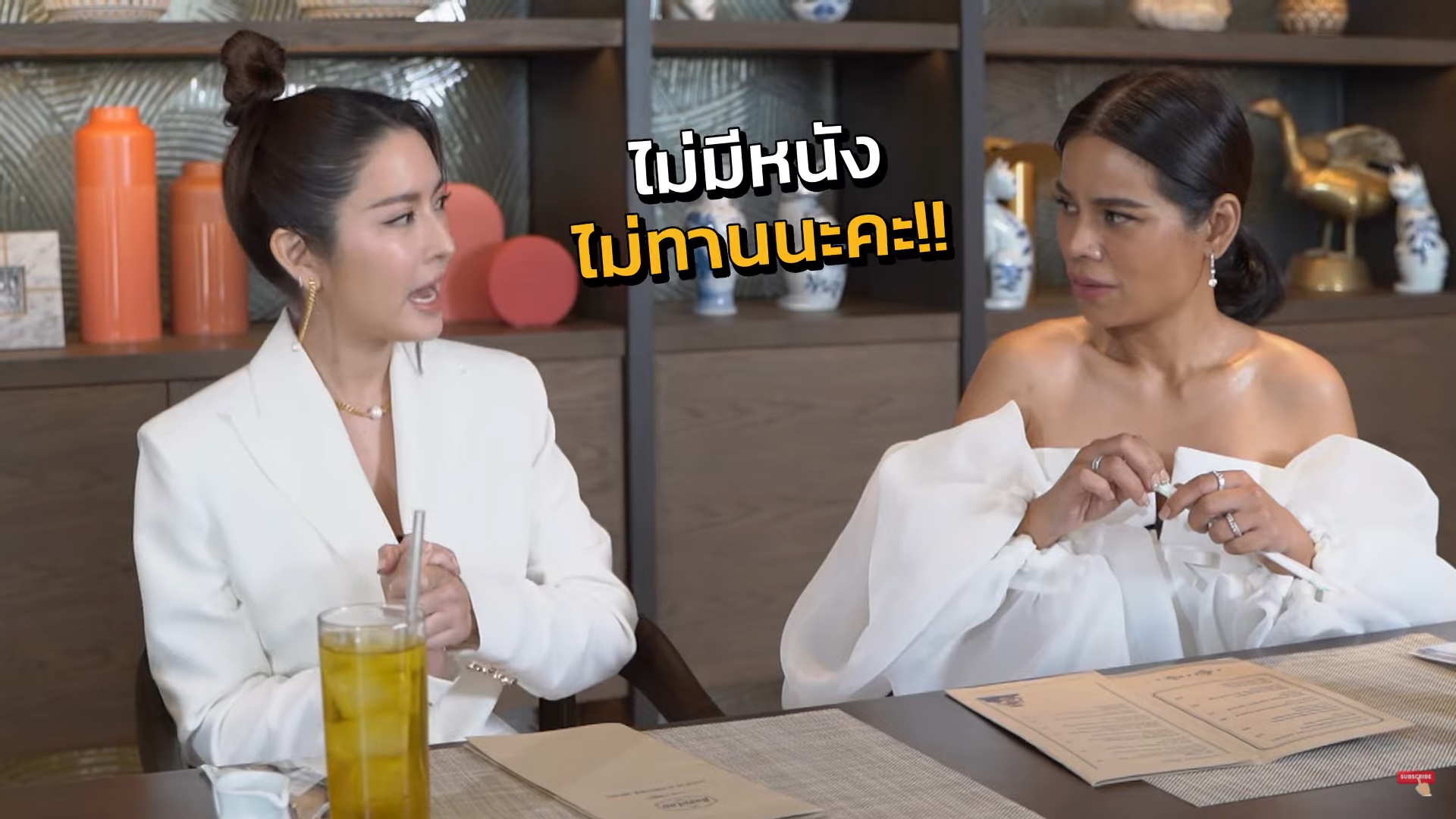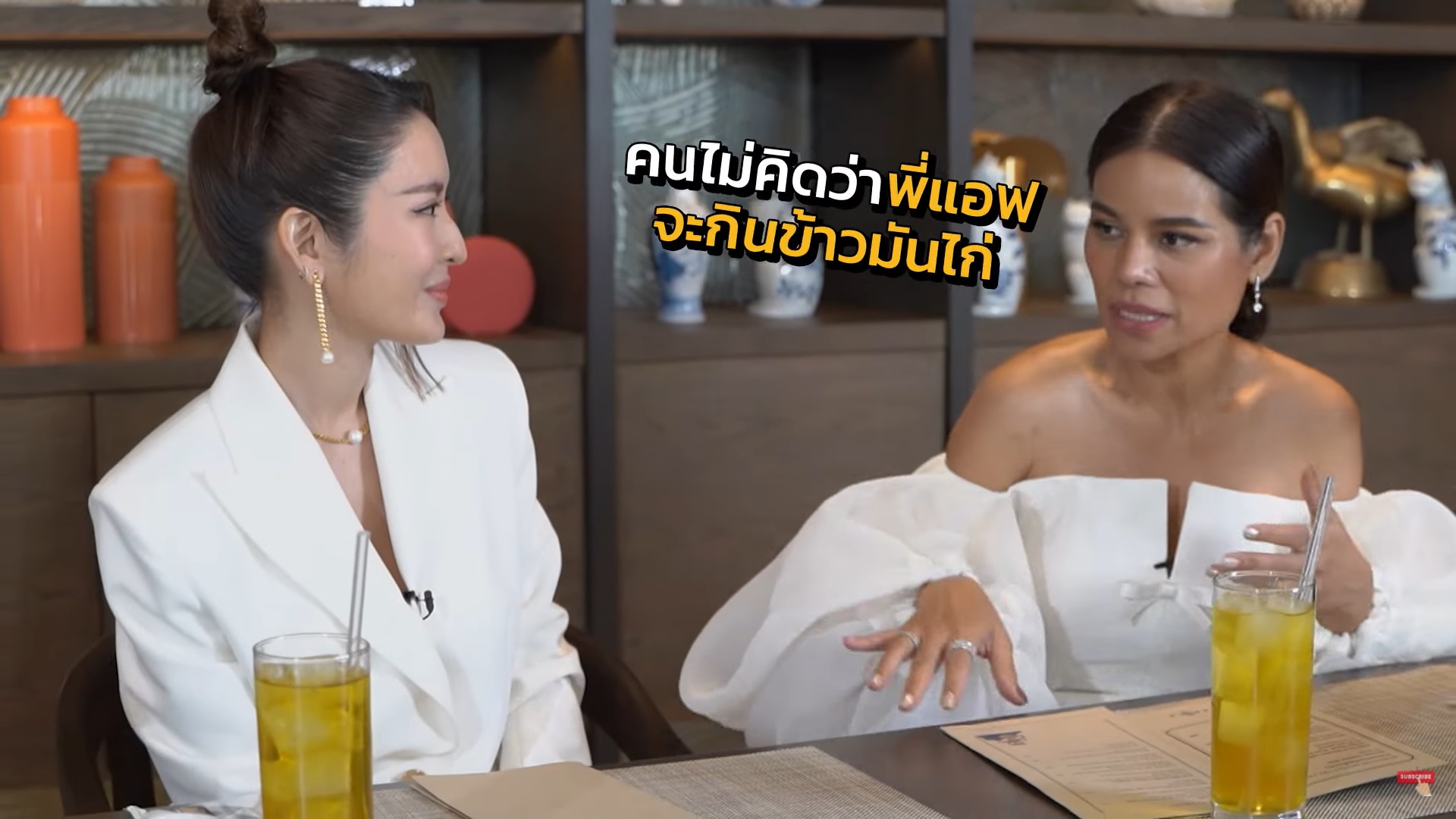 หลังจากที่พูดคุยกันพอหอมปากหอมคอ อาหารที่ทุกคนรอคอยก็มาถึง แต่งานนี้แม่แอฟได้โชว์โมเมนต์โก๊ะ ๆ ไปหนึ่งกรุบ ขณะกำลังหยิบแก้วน้ำขึ้นมาดื่ม โดยเผลอดูดที่คนแก้วไปเพราะนึกว่าเป็นหลอด ทำเอาขำตัวโยนกันทั้งพิธีกรและทีมงานหลังกล้อง