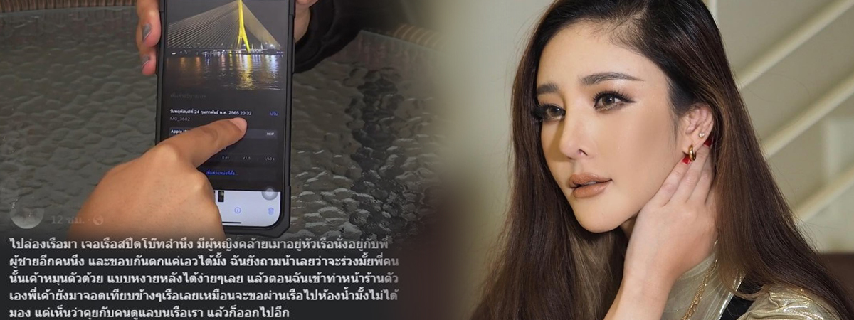 ขณะนั้นด้วยความที่สายตาสั้นบวกกับความห่าง ความมืด จึงเห็นไม่ชัดว่าเป็นดารา แต่รู้ว่ามีผู้หญิงขาว สวย ผิวออร่า ใส่ชุดเดรสสีชมพูนั่งเหงา ๆ คนเดียวตรงขอบเรือซึ่งที่กันตกแค่เอวถือว่าต่ำมาก เลยรู้สึกว่าตรงที่เขานั่งมันไม่ปลอดภัยเลย พี่เขาจะร่วงไหมเพราะดูคล้ายเมาและเขาหมุนตัวด้วย หงายหลังได้ง่าย ๆ เลย