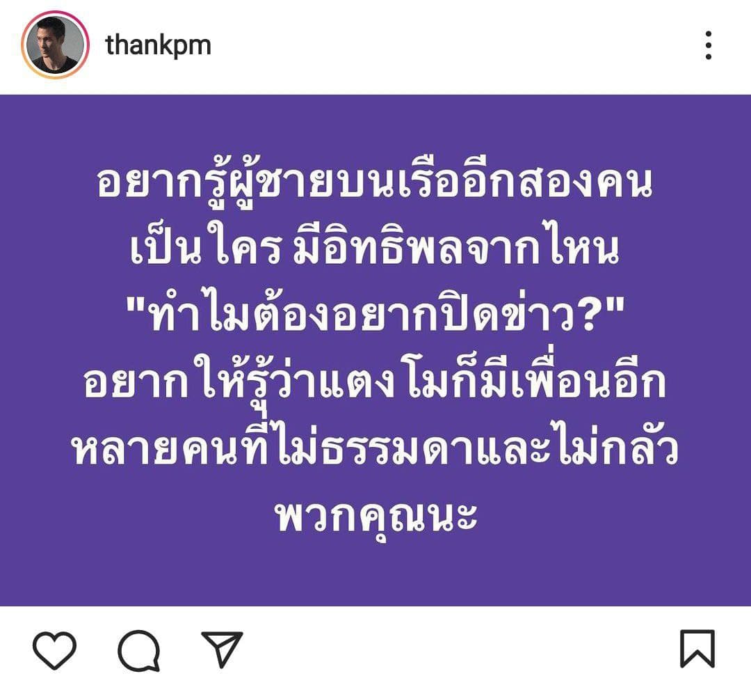 แต๊งค์ พงศกร แฟนเก่า แตงโม นิดา โพสต์สงสัย ผู้ชายบนเรืออีก 2 คน เป็นใคร มีอิทธิพลจากไหน ทำไมอยากปิดข่าว อยากบอก แตงโม ก็มีเพื่อนอีกหลายคนที่ไม่ธรรมดา