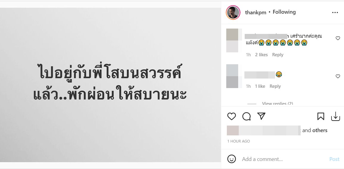 แต๊งค์ พงศกร : ไปอยู่กับพี่โสบนสวรรค์แล้ว..พักผ่อนให้สบายนะ