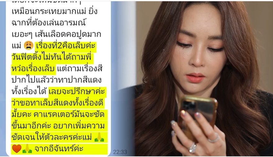 โดยในคลิปจากทาง วันบันเทิง - oneบันเทิง ที่เปิดตัว เป้ย ปานวาด ในการรับบทนี้ และได้ร่วมพูดคุยกันนั้น ได้มีการเผยภาพข้อความแชตจาก แตงโม นิดา ที่ส่งถึงทีมงานละครเรื่องคุณชาย ในช่วงก่อนหน้านี้ด้วย ซึ่งทางแตงโม มีความใส่ใจในตัวละครนี้มาก ๆ ทั้งเสนอเรื่องทรงผม อยากขอให้ยาวกว่าตอนแรกเพื่อจะได้ออกมาดูดี และยังเสนอว่าให้ตัวละครนี้ทาเล็บสีแดงทั้งเรื่องดีไหม เพื่อย้ำคาแรกเตอร์ให้ชัดขึ้นอีก พร้อมบรรยายลักษณะนิสัยตัวละครนี้แบบอินขั้นสุด