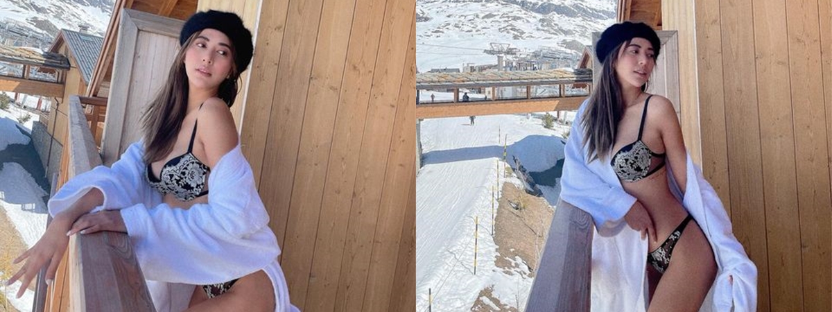 ส่องไอจี น้ำหวาน เดอะเฟซ ในชุดชั้นในลูกไม้ตัวจิ๋ว ที่เต็มด้วยหิมะขาวโพลนด้านหลัง ขณะเที่ยวพักผ่อนที่โมนาโก