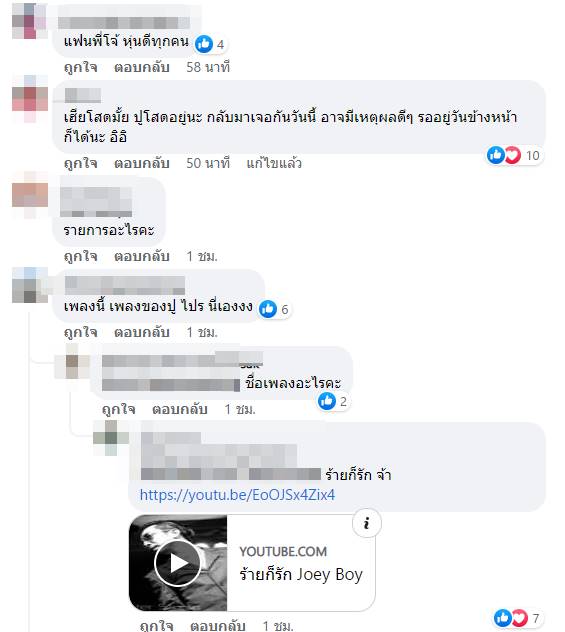 โจอี้ บอย และ ปู ไปรยา เจอกันอีกครั้งหลังเลิกกันไปเป็น 10 ปี มีการร้องเพลง ร้ายก็รัก ให้ฟัง ยืนยันมิตรภาพยังดี จากแต่ก่อนร้องให้ไห้เพลงนี้ วันนี้มาแดนซ์แทนแล้ว