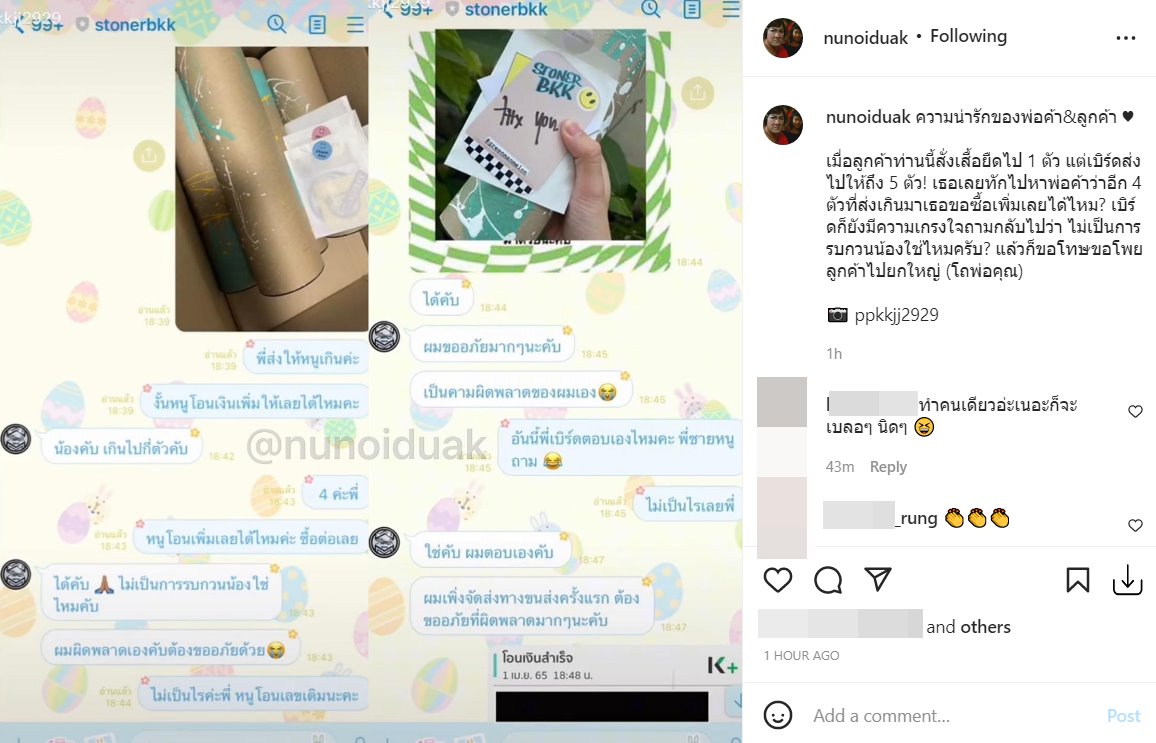 เบิร์ด แฟนแตงโม นิดา กับความน่ารัก เมื่อลูกค้าสั่งเสื้อ 1 ตัว แต่ส่งเกินมาอีก 4 ลูกค้าจะขอโอนให้เพิ่ม เลยตอบกลับไปแบบนี้ มีความเกรงใจสุด