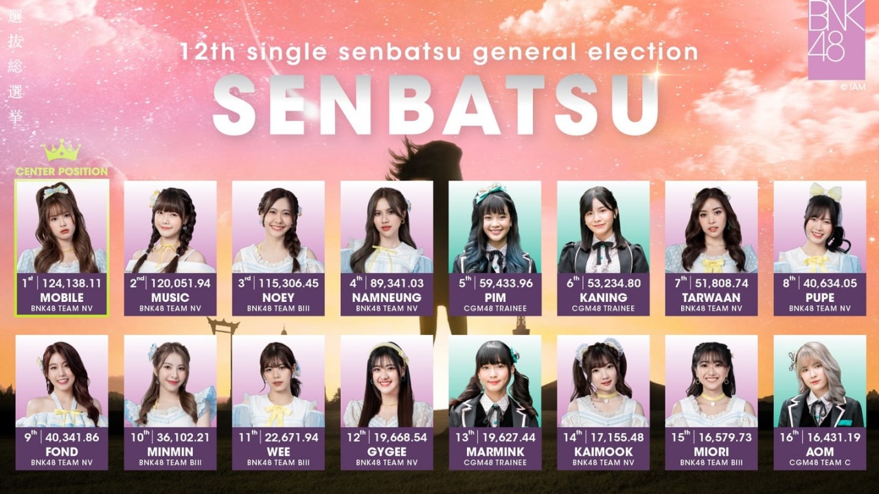 สำหรับผลการเลือกตั้งทั่วไปของ BNK48 ในครั้งนี้ โมบายล์ BNK48 เป็นผู้คว้าอันดับ 1 ไปด้วยคะแนนโหวตถึง 124,138.11 TOKENS เลยทีเดียว ส่วนผลทั้งหมด มีดังนี้...