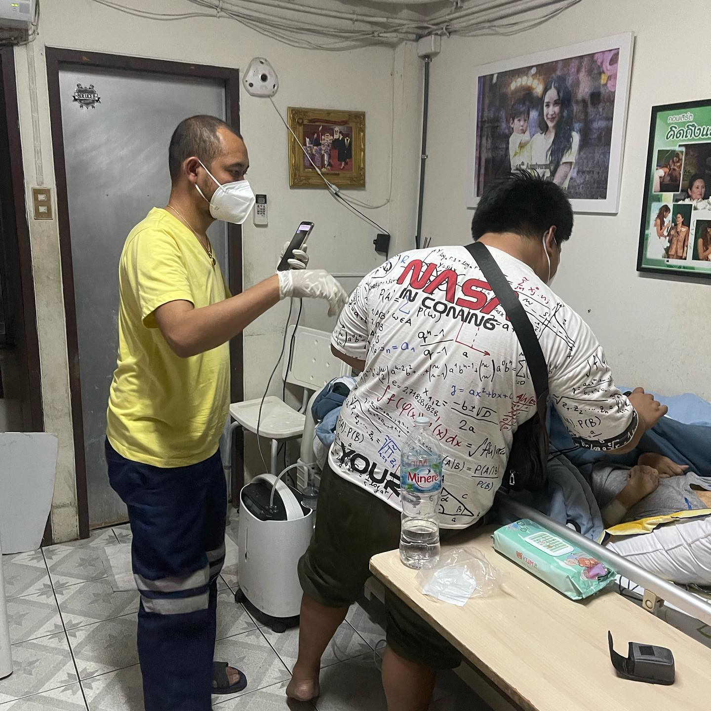 เรื่องการดูแลคุณแม่ ICU เขาไม่ให้เข้าอยู่แล้ว ไม่ให้คนเฝ้า ให้แค่ไปเยี่ยมแล้วก็กลับ ก็จะผลัดกันไปดู หลังเธอเสร็จงานนี้ก็จะไปเฝ้าแม่สักชั่วโมง แล้วเดี๋ยวคุณหมอมาตรวจ พยาบาลมาดูแล เธอก็กลับบ้านมาเอาลูกนอน เราก็คอยไปเยี่ยม ไปอัปเดตอาการกับคุณหมอ