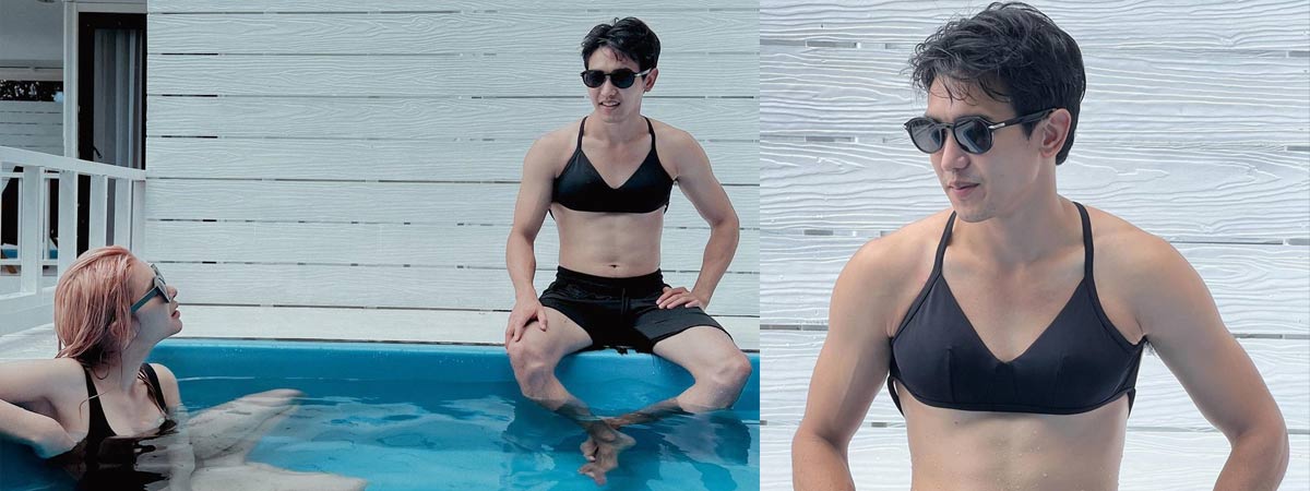 แต่ไฮไลต์เด็ดที่ทำเอาหลายคนร้องว้าวก็คือ หนุ่มก๊อตมีการหยิบชุดว่ายน้ำทรงแบบผู้หญิงมาใส่โชว์กล้ามหน้าท้อง ส่วนท่อนล่างเป็นกางเกงว่ายน้ำแบบผู้ชายธรรมดา พร้อมเขียนแคปชั่นสุดฮาว่า "ลงมีสาระยอดไลค์มันน้อย ลองลง sexy บ้างเผื่อยอดจะขึ้น !"