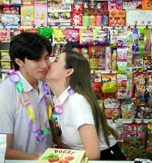 งานนี้ก็มีแฟนคลับที่พร้อมเปย์ สั่งซื้อมาลัยกันเพียบ ทำให้ได้เห็นโมเมนต์ชวนฟิน ที่ทั้งคู่คล้องมาลัยให้กัน สลับกันหอมแก้ม ก่อนปิดท้ายด้วยการจุ๊บกลางไลฟ์ ซึ่งทั้งคู่ก็ออกอาการเขินกันไม่น้อย มีความหน้าแดง ส่วนแฟน ๆ ก็หวีดแรงไปตาม ๆ กัน