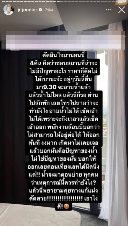 หนูนา - จูเนียร์ เดือด ! นอนโรงแรมดัง แต่น้ำไม่ไหล แจ้งล็อบบี้แต่โดนไล่ออก บอกให้ออกจากโรงแรม พนักงานบอก ปัญหาน้ำประปาไม่ใช่ปัญหาของโรงแรม ลั่น เกิดมาไม่เคยเจอ