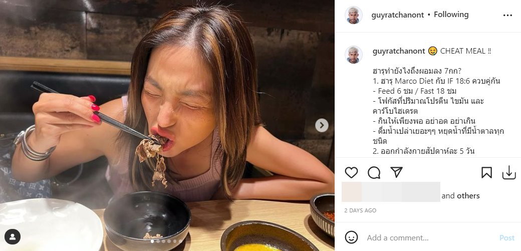 ล่าสุดหนุ่ม กาย รัชชานนท์ ก็ออกมาเผยภาพของ ฮารุ สุประกอบ ระหว่างกินชาบู พร้อมเผยเคล็ดลับความผอมของภรรยาสาว ดังนี้