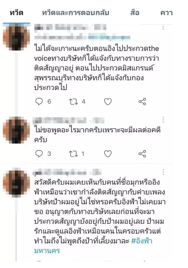 คนที่มาแฉบอกว่า เซ็นสัญญาเมื่อปี 56 อายุสัญญา 12 ปี ก่อนหน้านี้ตอน อิงฟ้า ประกวด The Voice ทางบริษัทก็แจ้งกับรายการแล้วว่าติดสัญญาอยู่ ตอนไปประกวดมิสแกรนด์สุพรรณบุรี บริษัทก็ได้แจ้งกับกองไปแล้ว