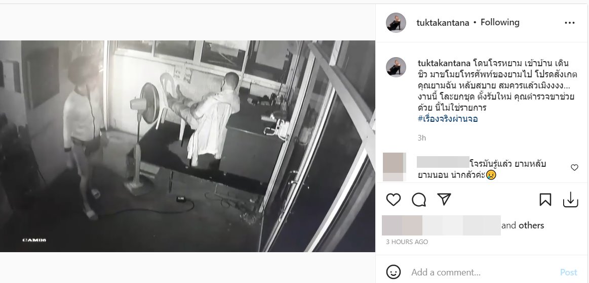 เรียกว่าหลักฐานคาตากันเลยทีเดียว เมื่อล่าสุด (10 พฤษภาคม 2565) ตุ๊กตา กันตนา ผู้บริหารค่ายกันตนา ได้ออกมาเผยคลิปเหตุการณ์จากกล้องวงจรปิด นาทีโจรเข้าบ้านแบบหยามกันมาก ๆ กล้องวงจรปิดก็มี ยามก็มี แต่หลับอยู่ คนร้ายเลยเข้ามาฉกโทรศัพท์ของยามไปหน้าตาเฉย