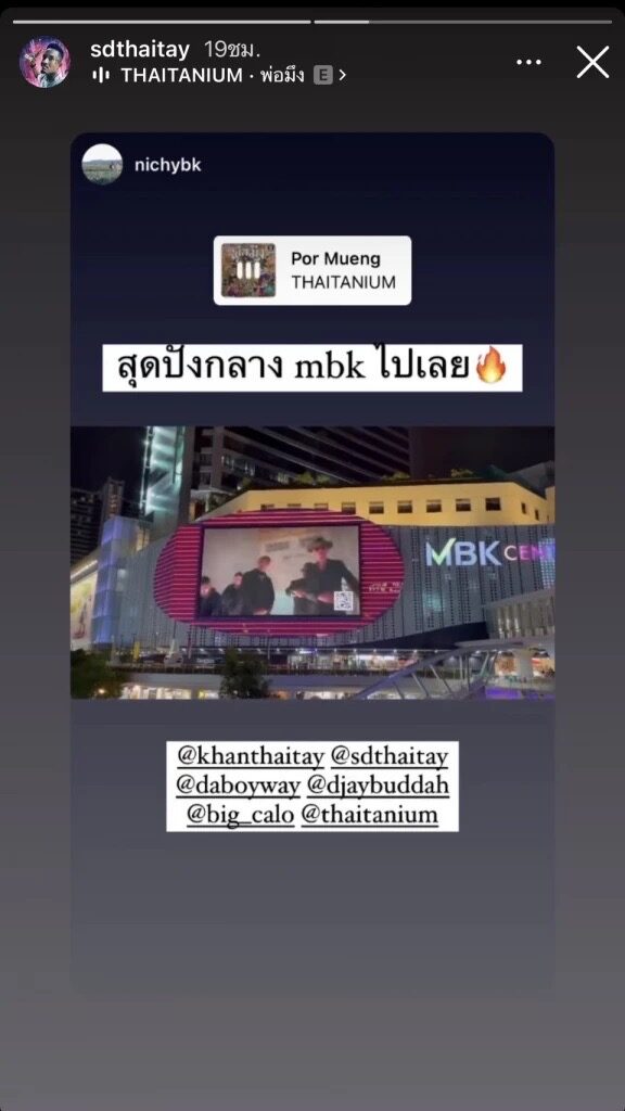 เดย์ ไทยเทเนี่ยม เคลื่อนไหวแล้ว หลังเจอกระแสดราม่าด่าเพลง พ่อมึง โพสต์สตอรี่เอ็มวีเพลงถูกเปิดบนจอยักษ์ใจกลางกรุงเทพฯ
