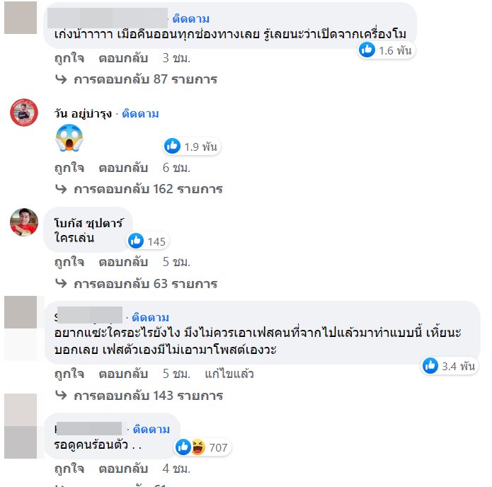 ขณะที่ในโพสต์ดังกล่าวจากเฟซบุ๊กของ แตงโม นิดา มีผู้เข้ามาแสดงความคิดเห็นกันรวมแล้วหลายหมื่นคอมเมนต์ โดยส่วนใหญ่สงสัยว่าใครเล่น และมีคอมเมนต์ที่น่าสนใจ อาทิ "เก่งน้าาาาา เมื่อคืนออนทุกช่องทางเลย รู้เลยนะว่าเปิดจากเครื่องโม" และ "อยากแซะใครอะไรยังไง มึงไม่ควรเอาเฟซคนที่จากไปแล้วมาทำแบบนี้ เหิ้-นะบอกเลย เฟซตัวเองมีไม่เอามาโพสต์เองวะ"