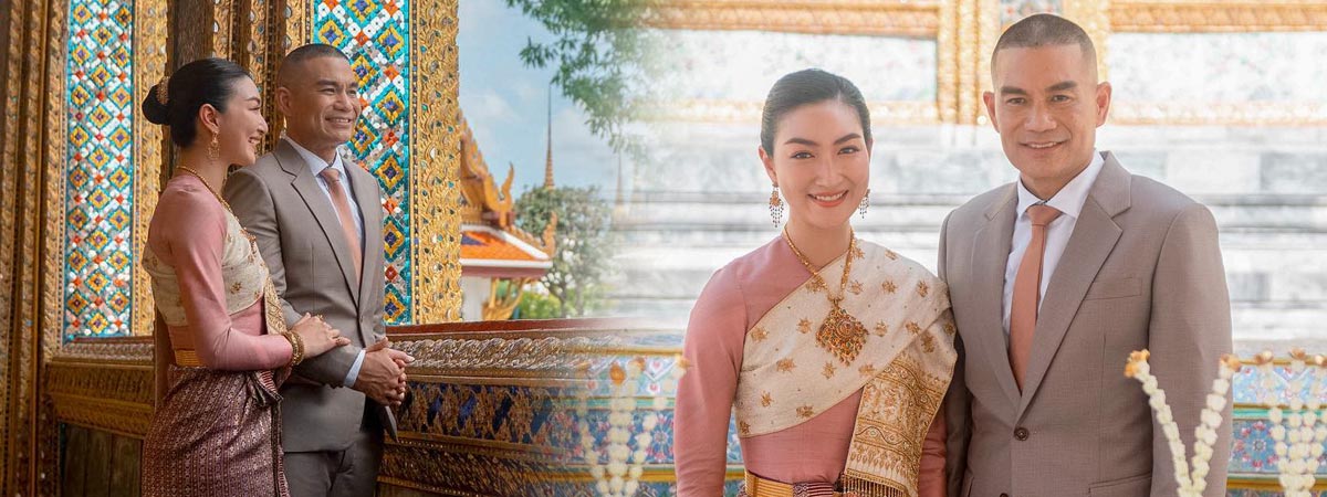 แพนเค้ก เขมนิจ - พี่หมี พ.ต.ท.ศักดิ์สุนทร ควงคู่ไหว้พระแก้วเสริมมงคลชีวิตเตรียมแต่งงานเดือนหน้า ว่าที่เจ้าสาวสวยสง่าในชุดไทยสุดวิจิตรออร่าจับมาก