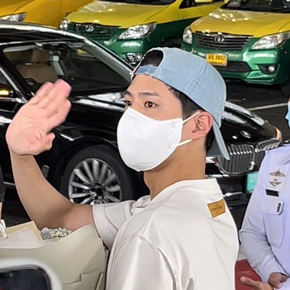 พัคโบกอม บินถึงไทยแล้ว โมเมนต์น่ารักวิ่งมารับของขวัญจากแฟนชาวไทยที่รอด้านนอกสนามบิน แฟนคลับฟินความหล่อกันขั้นสุด