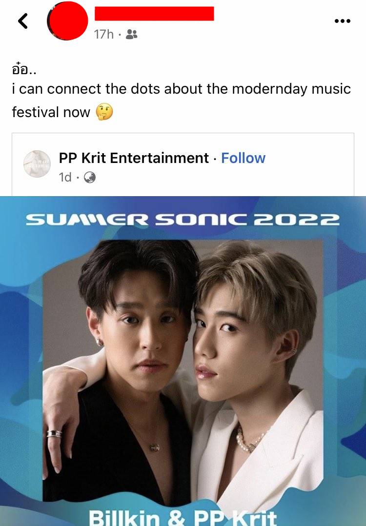 วันที่ 4 มิถุนายน 2565 โลกออนไลน์มีการแชร์ภาพจากมือกีตาร์ของวงอินดี้ชื่อดัง Gym and Swim ที่ได้แชร์ภาพโปสเตอร์บิวกิ้น พุฒิพงศ์ และพีพี กฤษฏ์ ที่จะได้ขึ้นเวทีในเทศกาลดนตรีชื่อดังของประเทศญี่ปุ่นอย่าง Summer Sonic 2022 หลังจากนั้น นักดนตรีอีกคนจากวง Wave and so ก็ได้โพสต์ข้อความลงเฟซบุ๊กส่วนตัวว่า "ทำเพลงกันแทบตาย"