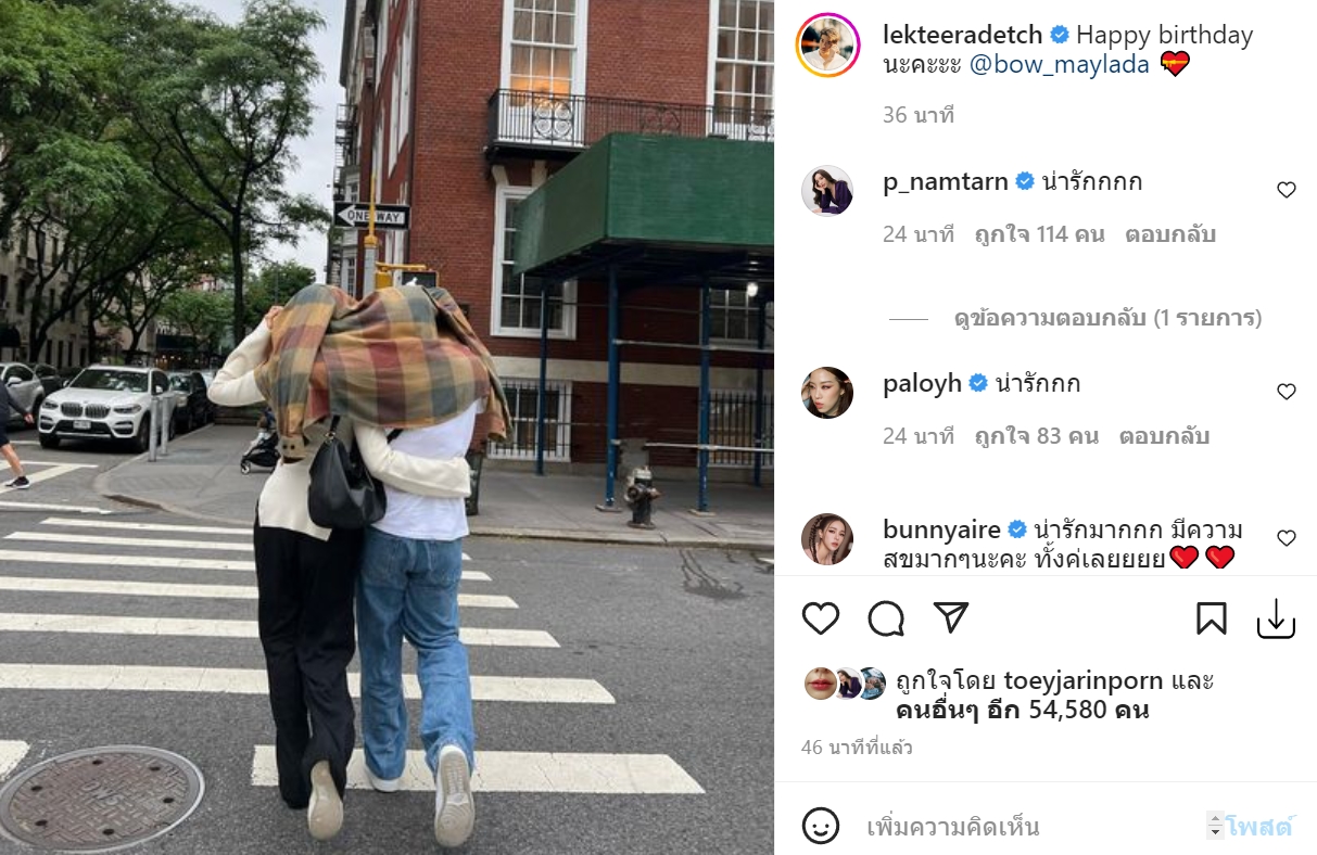 อาเล็ก ธีรเดช โพสต์ภาพคู่อวยพรวันเกิด โบว์ เมลดา กอดเอวคลุมผ้าเดินข้ามถนน บอกเลยภาพนี้ไม่เห็นหน้า แต่ออร่าความสวีตพุ่งสุด ๆ หวานแบบตะโกนไปเลย