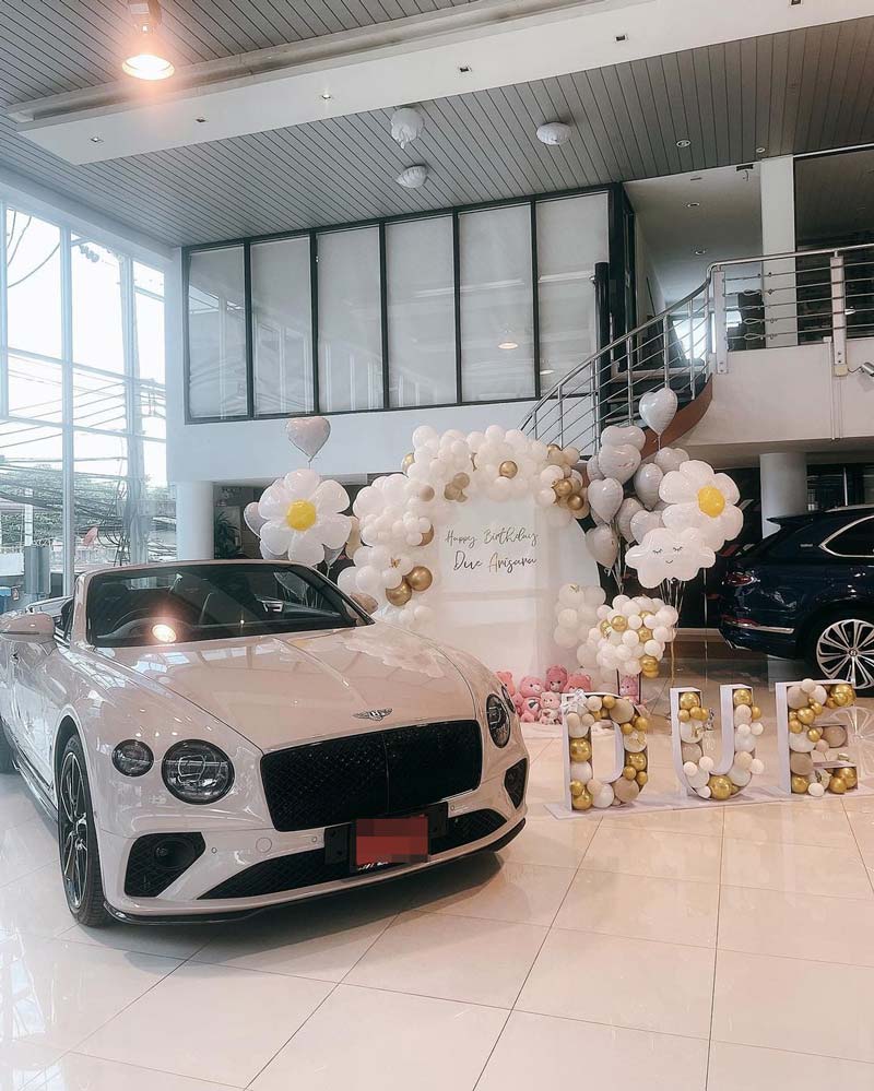 โดยล่าสุด (15 มิถุนายน 2565) เนื่องในวันเกิดของสาวดิว เจ้าตัวก็มีการแชะภาพคู่กับรถสุดหรูอย่าง เบนท์ลีย์ (Bentley) ที่เพิ่งถอยป้ายแดงมาเปย์ตัวเองหมาด ๆ สนนราคาเบา ๆ เริ่มต้นที่ 20 ล้านบาท