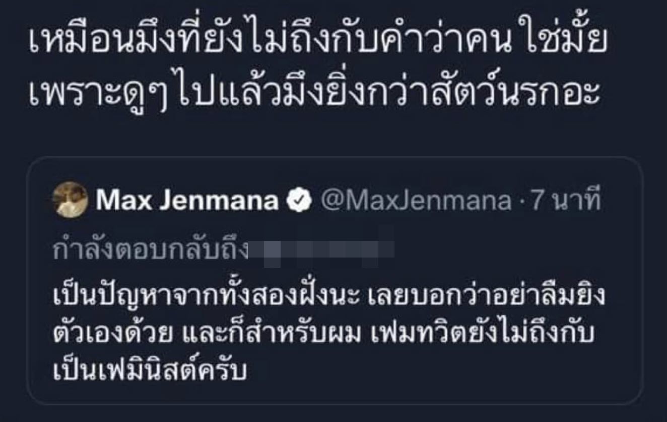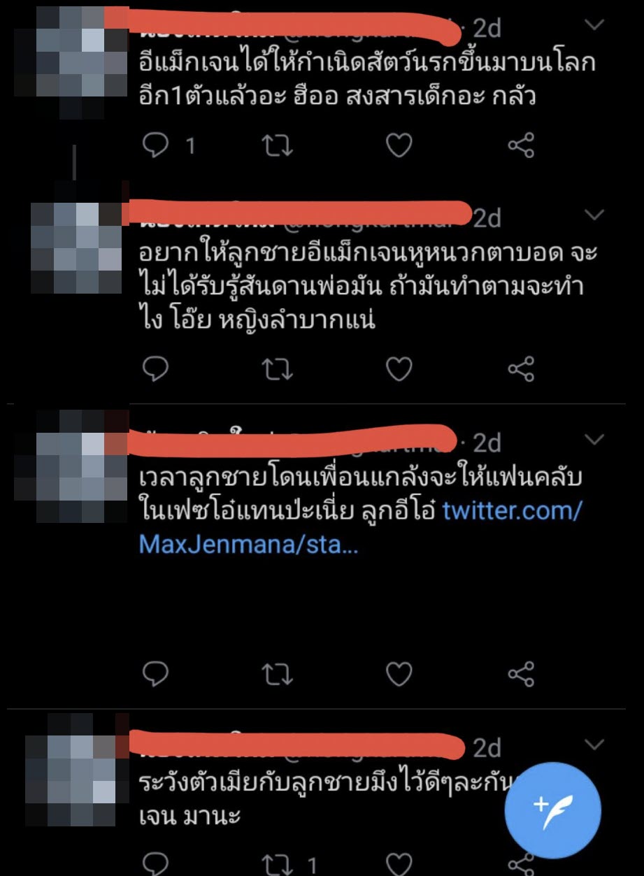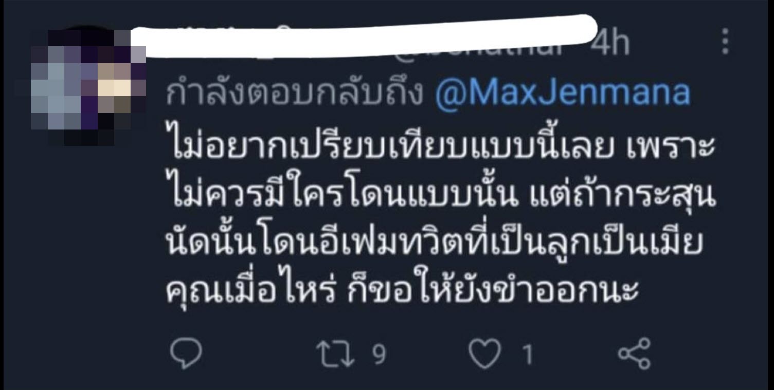 ขณะเดียวกัน แม็กซ์ เผยตัวอย่างข้อความที่ถูกโจมตีในโลกออนไลน์อย่างรุนแรง พร้อมระบุว่า “รวบรวมดาวทวิตเด่น ๆ ที่มีคนเคยส่งให้ผมนะครับ ผมเคยเสียใจจนทำอะไรไม่ได้นอกจากพยายามกู้ชื่อด้วยการอธิบายตัวเองไปวัน ๆ แต่เมื่อไม่สามารถทำได้ ผมจึงต้องเป็น “คนอย่างแม็กเจน” ตามที่พวกเขาสร้างผมขึ้นมา ซึ่งผมก็ไม่ได้อยากเป็น ผมอยากเอาเวลาไปทำงานดี ๆ #แต่ผมทำไม่ได้ครับพี่ มันมีสิ่งที่ค้างคาใจเสมอ ผมอดทนมานาน คอยเก็บคนใจร้ายในเงามืด และเดือนหน้าก็จะครบปีพอดี ผมคิดว่าผมมีความกล้าพอที่จะบอกทุกคนได้แล้วว่าผมโดนอะไรมาบ้าง