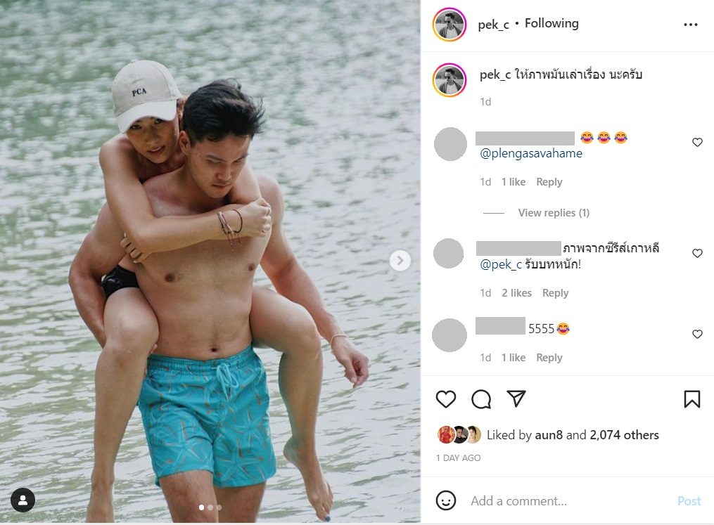 แถมยังเขียนแคปชั่นอีกด้วยว่า "ให้ภาพมันเล่าเรื่อง นะครับ" งานนี้มีคนเข้ามาแซวเป๊กแบบขำ ๆ ว่า ซีนนี้เป๊กดูรับบทหนักจริง ๆ สมบาทบาทมาก