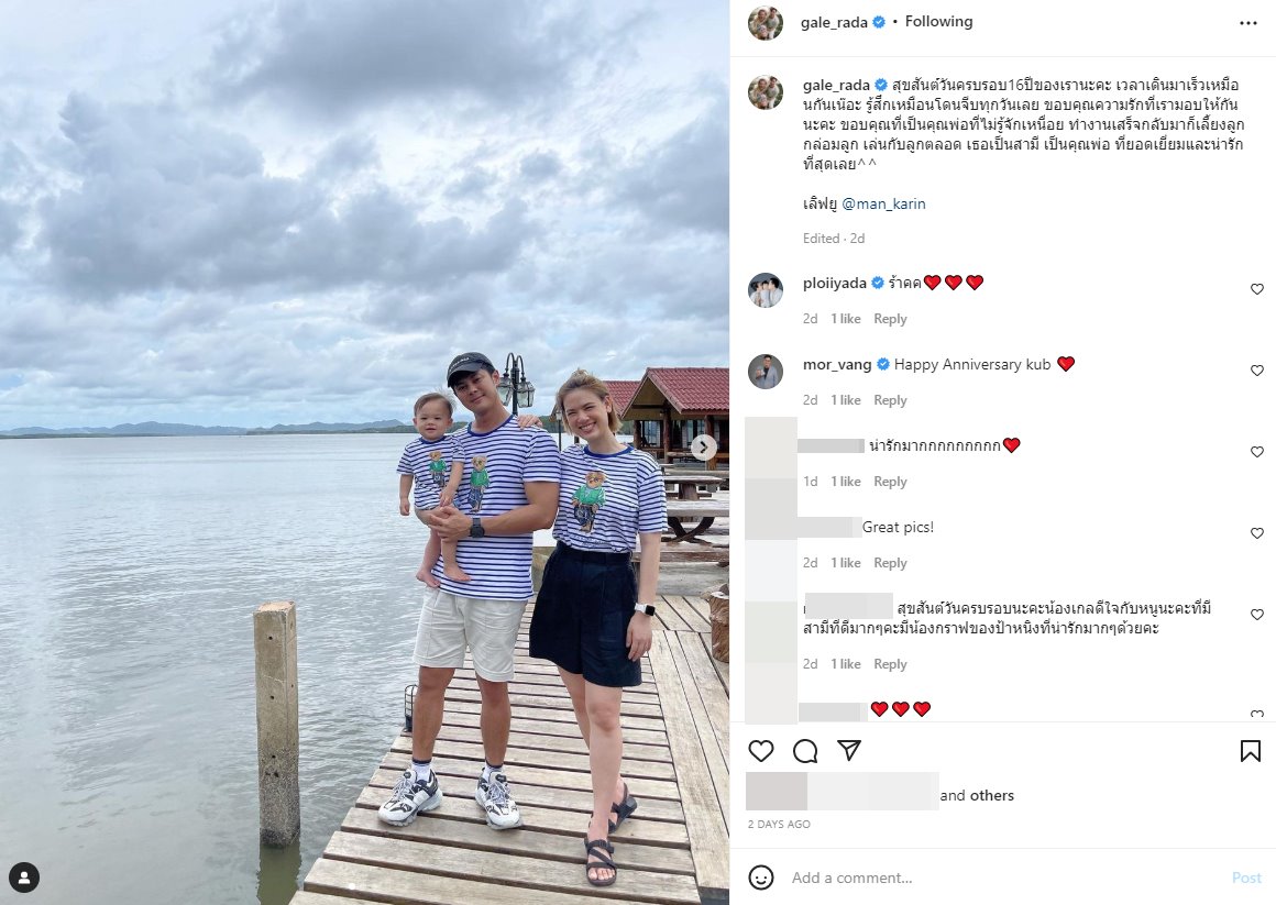 ดีใจที่ความรักของเราเดินทางมา 16 ปีแล้ว เป็น 16 ปีที่มีแต่สิ่งดี ๆ ให้กัน และเราจะเดินต่อไปอีก 16x16 ปีข้างหน้า และหวังว่า 16x16 ปีต่อไปเราก็จะยังอยู่ด้วยกัน สารักศรีนะครับ เริ่มต้นใหม่กันอีกครั้ง ให้มันดีกว่า 16 ปีที่ผ่านมาเลยนะ #การินรักรดา"