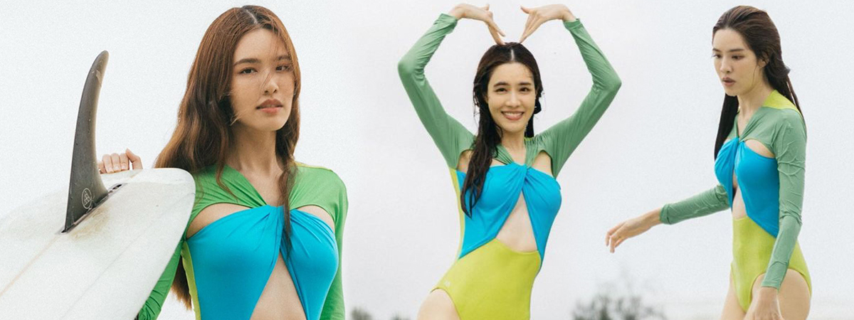 เซ็กซี่ทุกช่วงเวลา เกรซ กาญจน์เกล้า ดาราสาวชื่อดัง ที่มาในลุคสปอร์ตเกิร์ล ขณะเล่นเซิร์ฟโต้คลื่น ดาเมจเกินต้านจริง ๆ