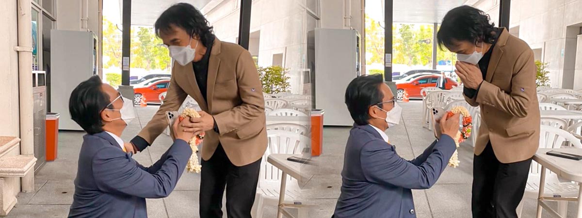 เป็นภาพที่น่าประทับใจอย่างมาก เมื่อครูเพลงชื่อดังอย่าง ครูสลา คุณวุฒิ ศิลปินแห่งชาติ 2564 สาขาศิลปะการแสดง นักประพันธ์เพลงลูกทุ่งหมอลำ โปรดิวเซอร์เพลง และนักร้องเพลงลูกทุ่ง ได้โพสต์ภาพความประทับใจผ่านเฟซบุ๊ก บ้านครูสลา คุณวุฒิ เป็นภาพที่ เบิร์ด ธงไชย ศิลปินชื่อดังซึ่งเป็นไอดอลของหลายคน นำพวงมาลัยมาแสดงความยินดีกับครูสลา