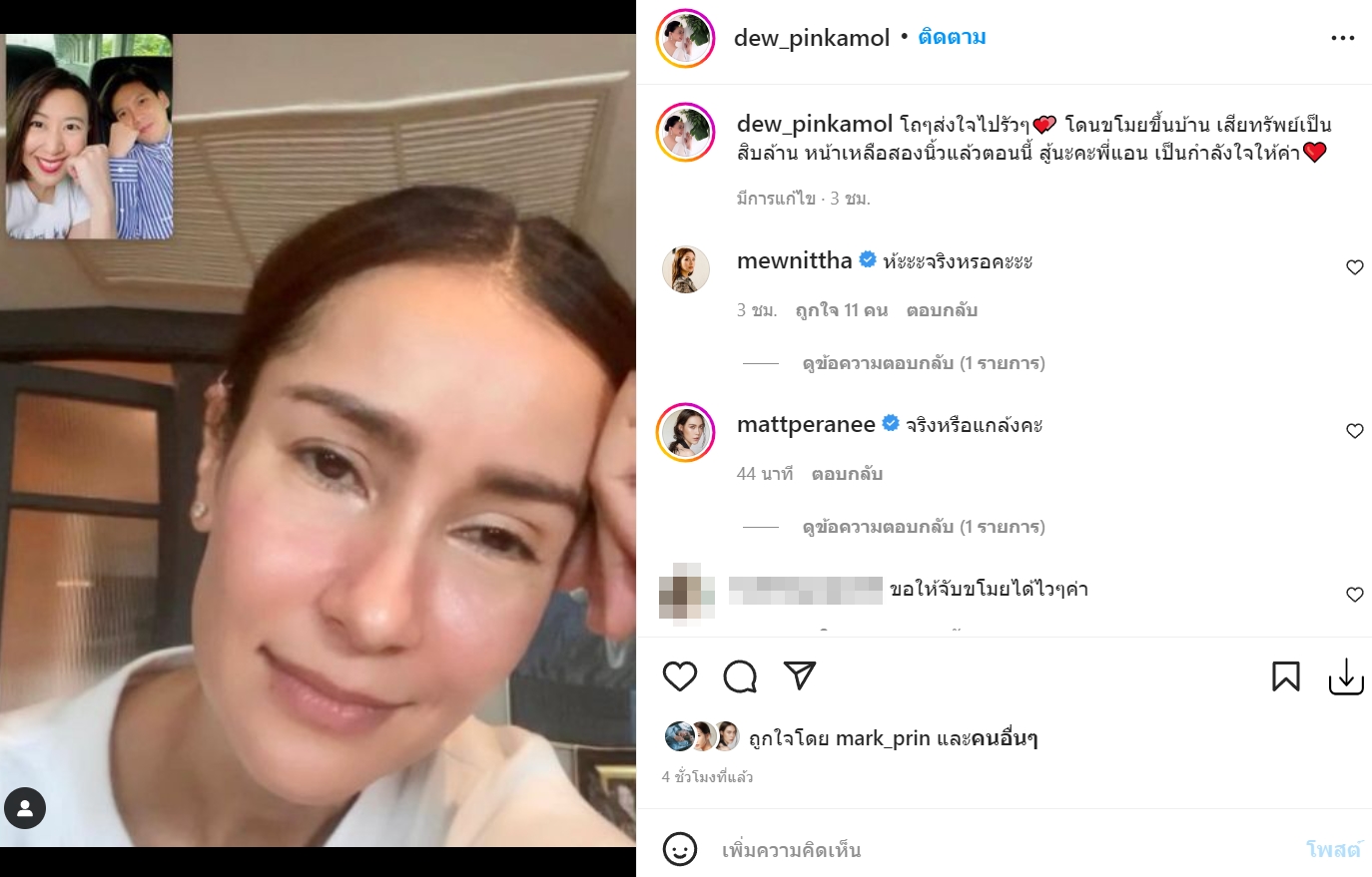 สำหรับรายละเอียดของผู้ก่อเหตุ ทางนักแสดงสาวจะแถลงข่าวด้วยตัวเองอีกครั้ง ส่วนของกลางที่สูญหายไปนั้น เจ้าหน้าที่ตำรวจสามารถติดตามกลับมาได้อย่างครบถ้วน ทั้งได้กลับมาเลย และอีกส่วนอยู่ระหว่างอายัดจากโรงรับจำนำที่คนร้ายนำไปจำนำไว้
