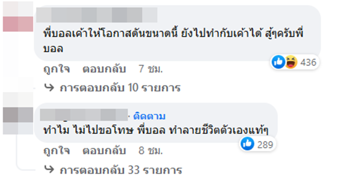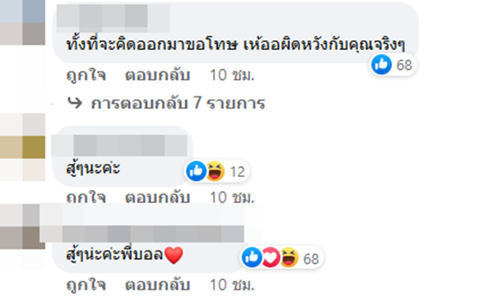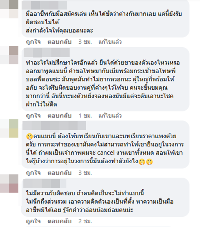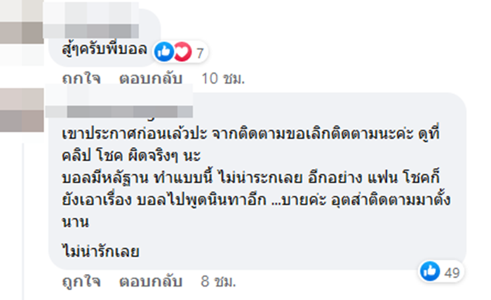 ส่วนอีกด้านก็มีแฟน ๆ และชาวเน็ตเข้ามาให้กำลังใจบอลและทีมงานที่ได้รับผลกระทบจากดราม่าดังกล่าว พร้อมสงสารที่ต้องมาเจอเรื่องราวเหล่านี้ด้วย