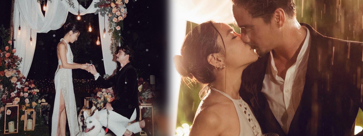 ในขณะที่เพื่อน ๆ เองก็ไชโยโห่ร้อง แสดงความยินดีกับทั้งสองคนไม่ขาดสาย แถมมีฝนตกลงมาโปรยปรายสร้างบรรยากาศครั้งนี้ให้โรแมนติกมากกว่าเดิม ยินดีกับทั้งสองคนด้วยนะคะ